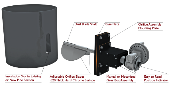 The CV-Style Adjustable Orifice is available with both a manual gear box adjustment or manual handle adjustment. Also engineered to fit within existing line blank spools, for a very quick plug and play installation.