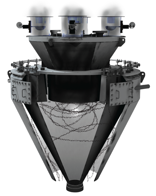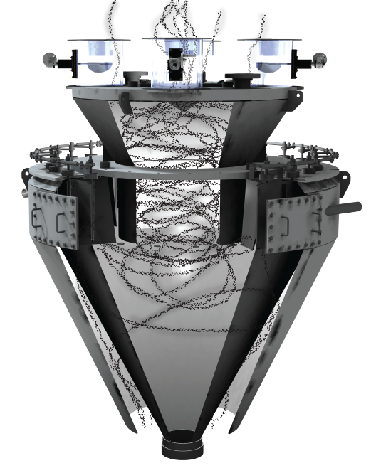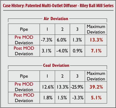 The SAS Multi-Outlet Diffuser breaks up these naturally occurring Coal ribbons and creates a homogeneous mixture of fuel and air exiting the top of the Pulverizer and entering the fuel pipes.